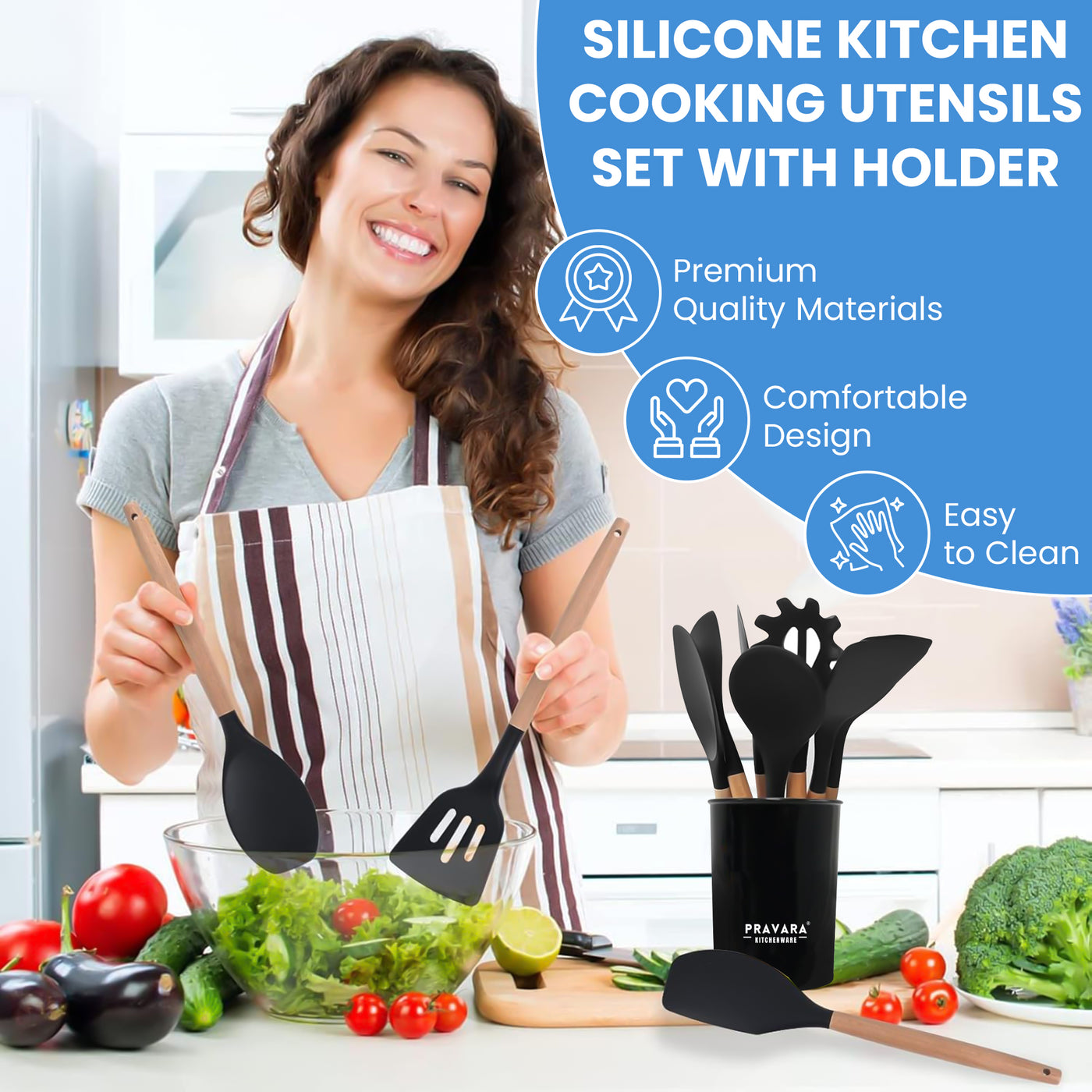 Introducing the Pravara Kitchen Utensils Set, a comprehensive 42 piece collection designed to organise your cooking experience. Crafted to aesthetically...
